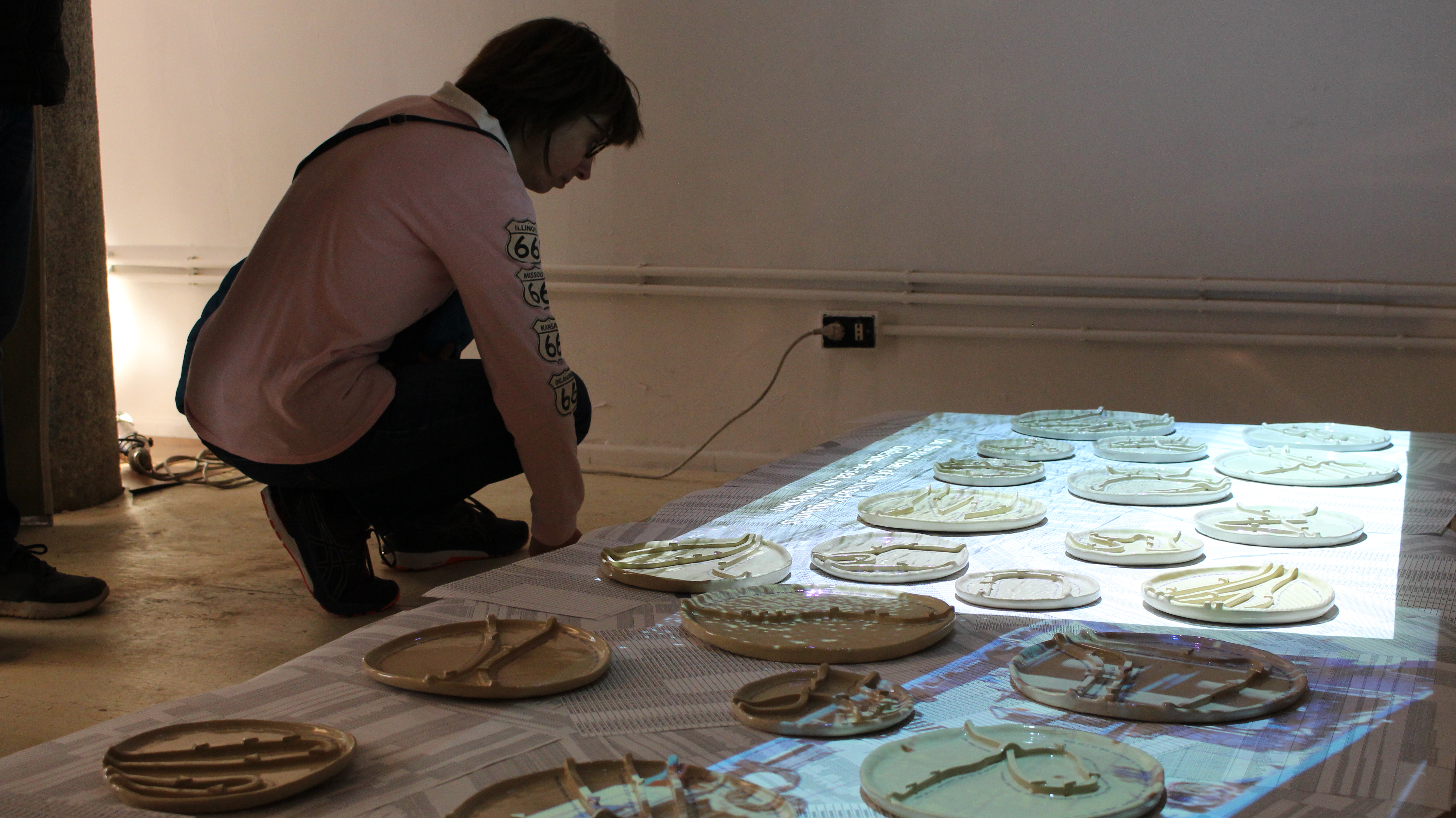 Form, video installation, 25 ceramic plates, Greenpeace documents, fish crates